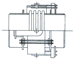 該補償器與角向型不同處在于它有一個萬向環在萬向環的周向有二對互相垂直的鉸鏈結構。因此它能吸收任意平面的角位移。同樣吸收位移時需二個或三個組合使用,不允許單個使用。
