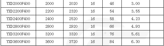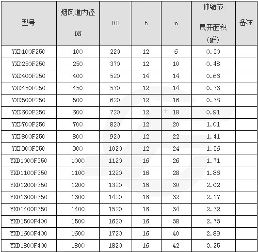 ?。?)YXDB800F250表示圓形非金屬補(bǔ)償器,長期工作≤200°C,內(nèi)徑為DN800mm,法蘭連接補(bǔ)償器長度250mm。