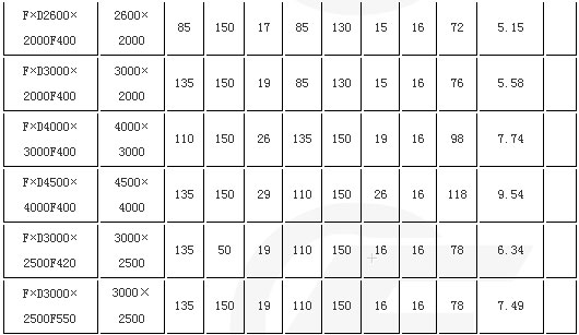 ?。?)FXDA4500×4000F400表示方形非金屬補(bǔ)償器,長期工作≤100°C,內(nèi)壁為4500×4000mm,法蘭連接產(chǎn)品長度400mm。